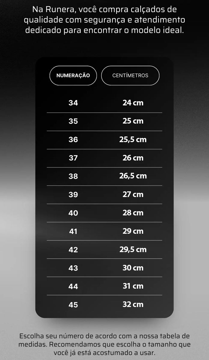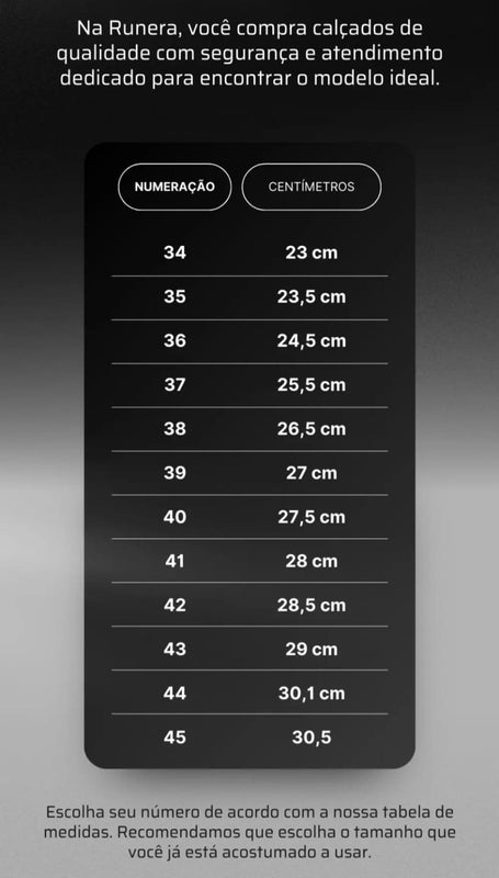 Na Runera, sua satisfação estĂĄ garantida! Caso o produto nĂŁo sirva, vocĂȘ tem até 7 dias apĂłs o recebimento para solicitar a troca ou devolução, sem custos adicionais.